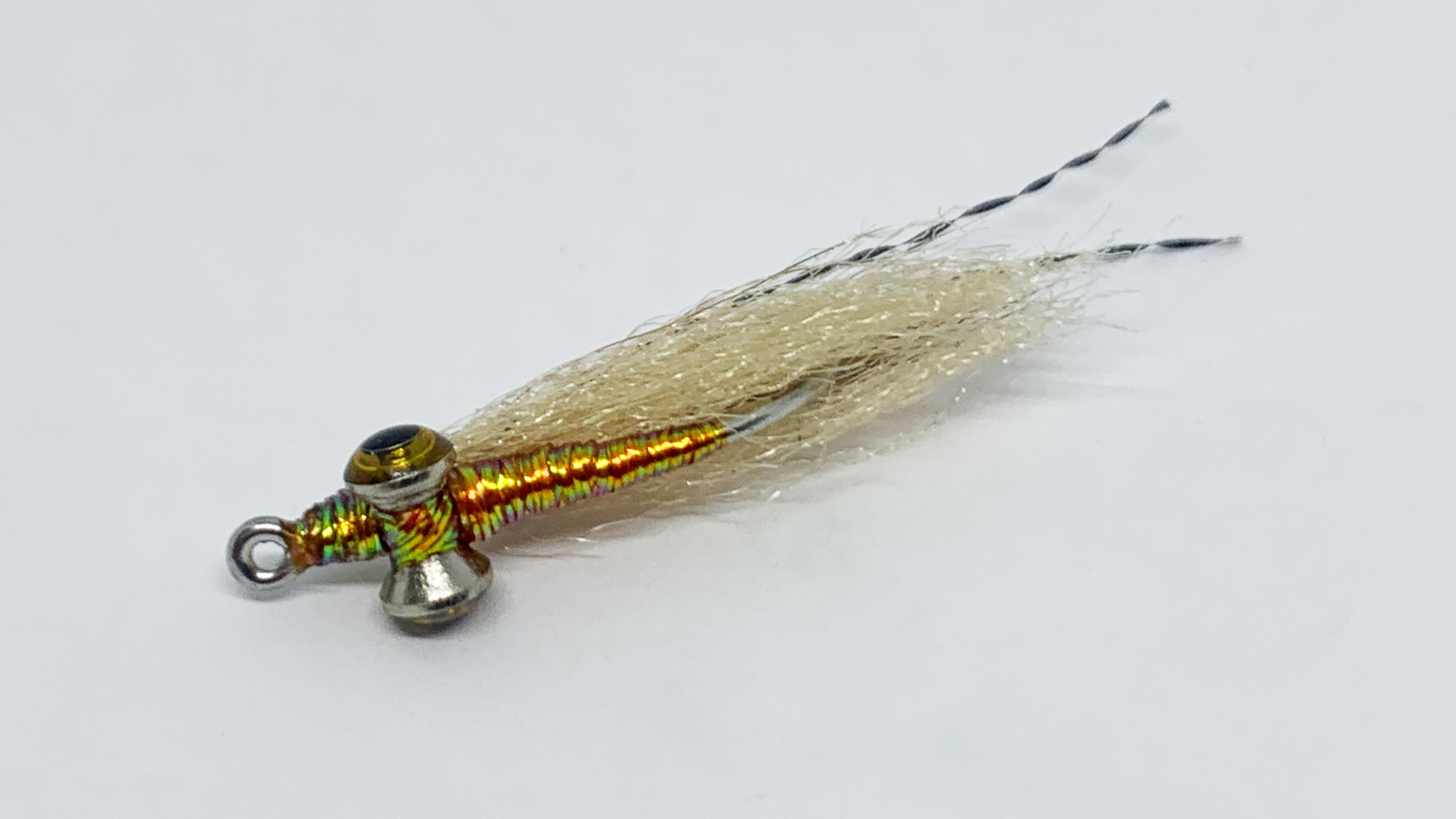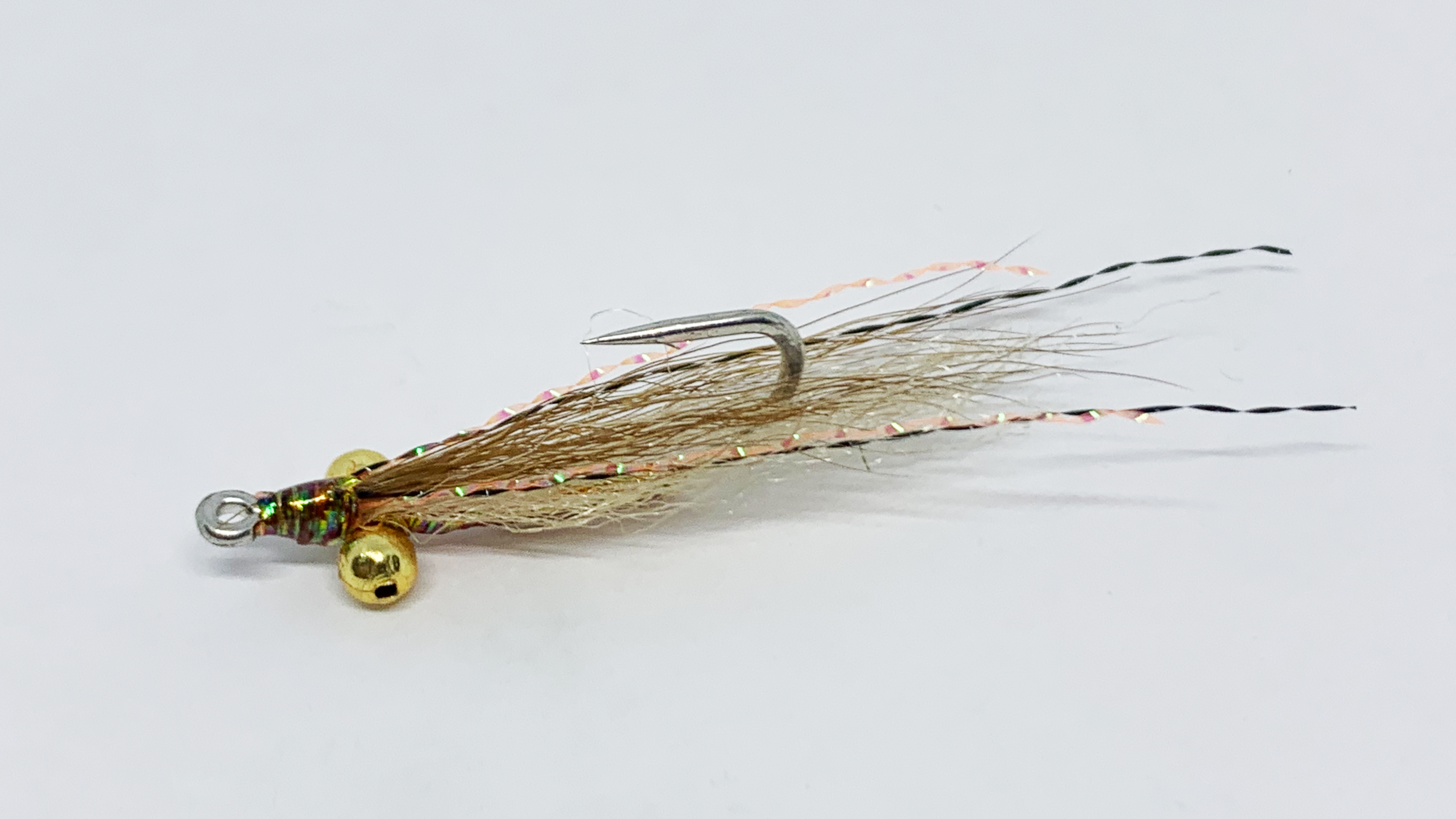 There is a selection of Bonefish flies, which fully complete any Flats box. These three styles of flies are the backbone. The Christmas Island Special, the Tan Rubber Leg Charlie’s and Gotchas tied in tan and olive, barred legs and in two sizes and in various weights to entice Bonefish and other smaller flats species. Simple in design and suggesting a number of prey types is the key to these flies success.